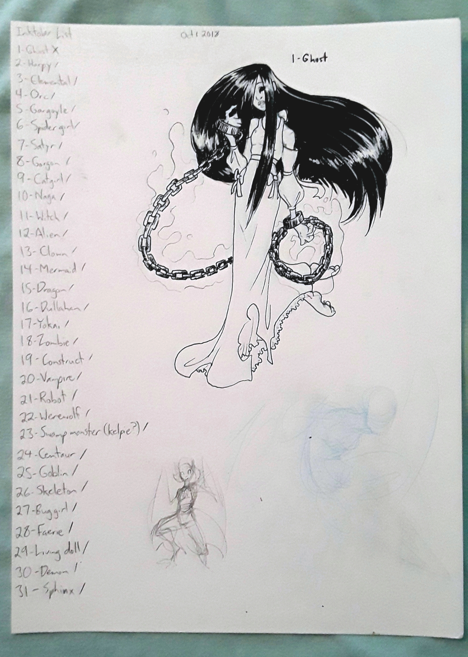 Magical Monster Girls 9x12 Sketchbook Page - Ghost