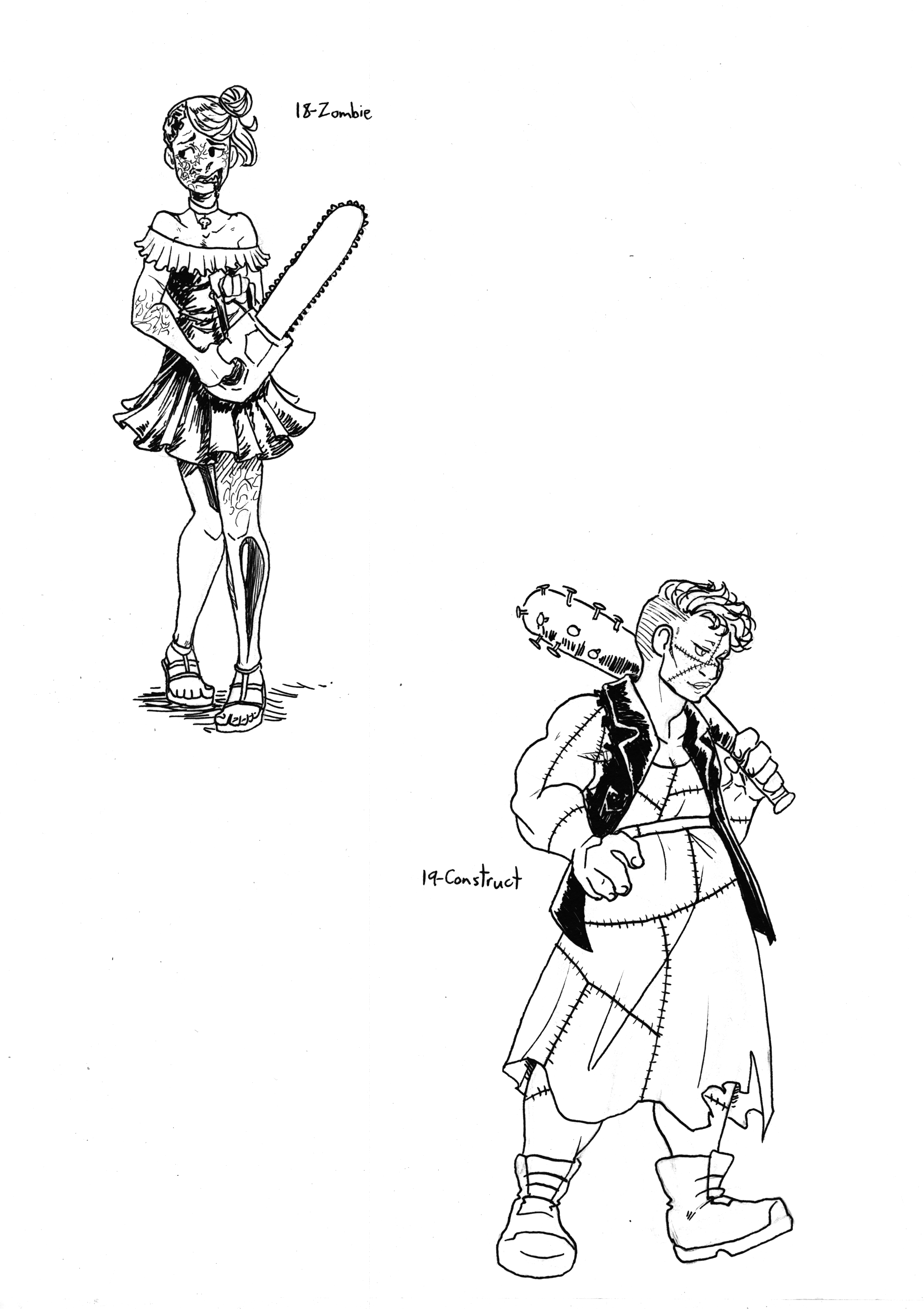 Magical Monster Girls 9x12 Sketchbook Page - Zombie, Construct