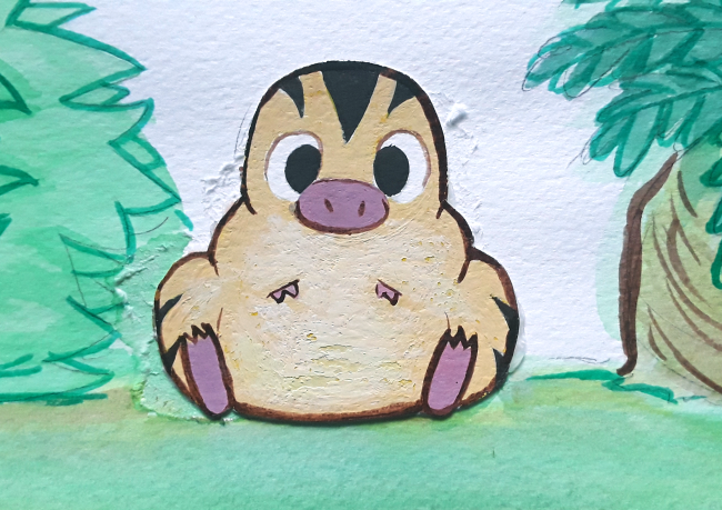 Original painting from the creation of my children's book, Lost Little Rex; gouache and ink on watercolor paper. Minor scuffing of the paper outside the illustration area is common, as are slightly rough/uneven edges. Example photos are unedited except for minor color corrections.