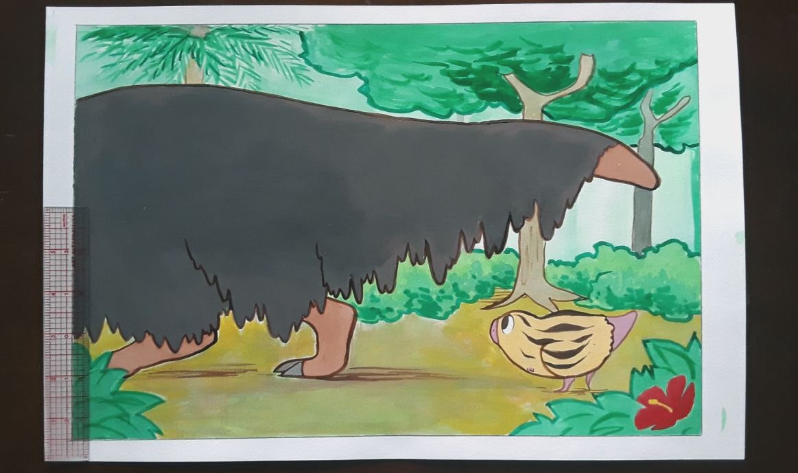 Original painting from the creation of my children's book, Lost Little Rex; gouache and ink on watercolor paper. Minor scuffing of the paper outside the illustration area is common, as are slightly rough/uneven edges. Example photos are unedited except for minor color corrections.