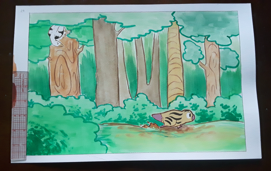 Original painting from the creation of my children's book, Lost Little Rex; gouache and ink on watercolor paper. Minor scuffing of the paper outside the illustration area is common, as are slightly rough/uneven edges. Example photos are unedited except for minor color corrections.