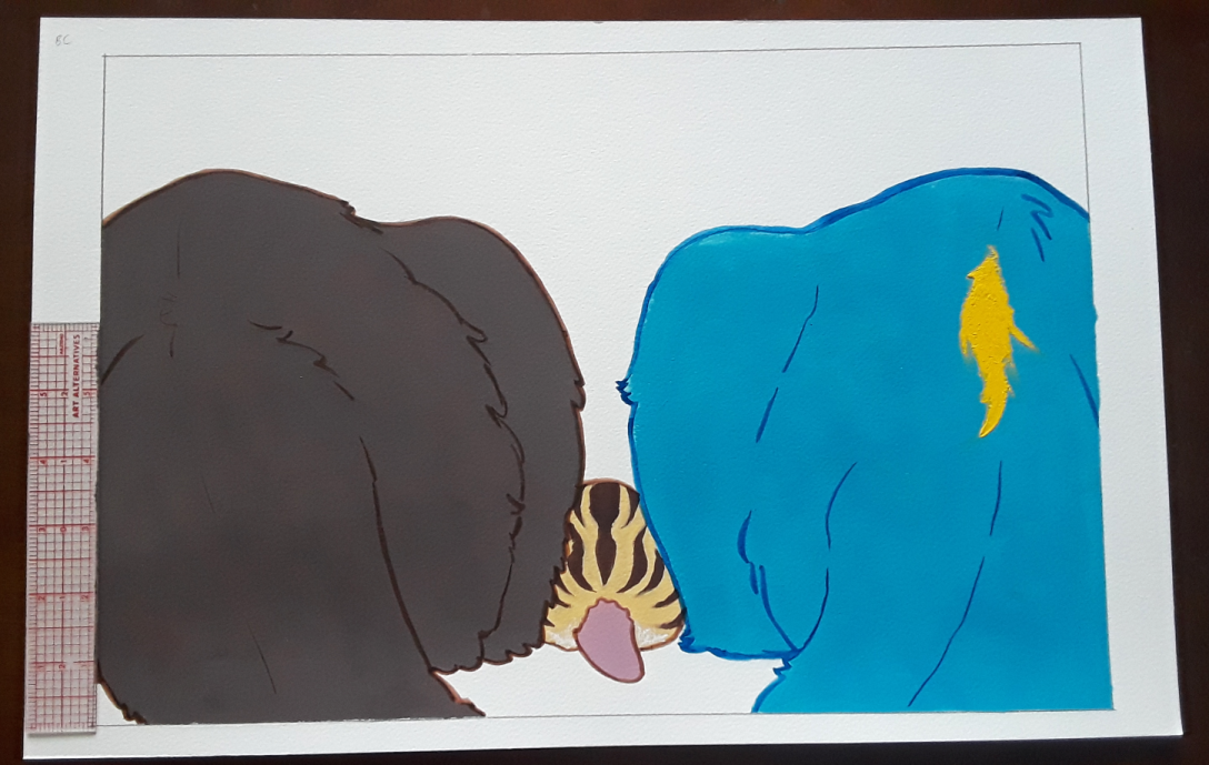 Original painting from the creation of my children's book, Lost Little Rex; gouache and ink on watercolor paper. Minor scuffing of the paper outside the illustration area is common, as are slightly rough/uneven edges. Example photos are unedited except for minor color corrections.
