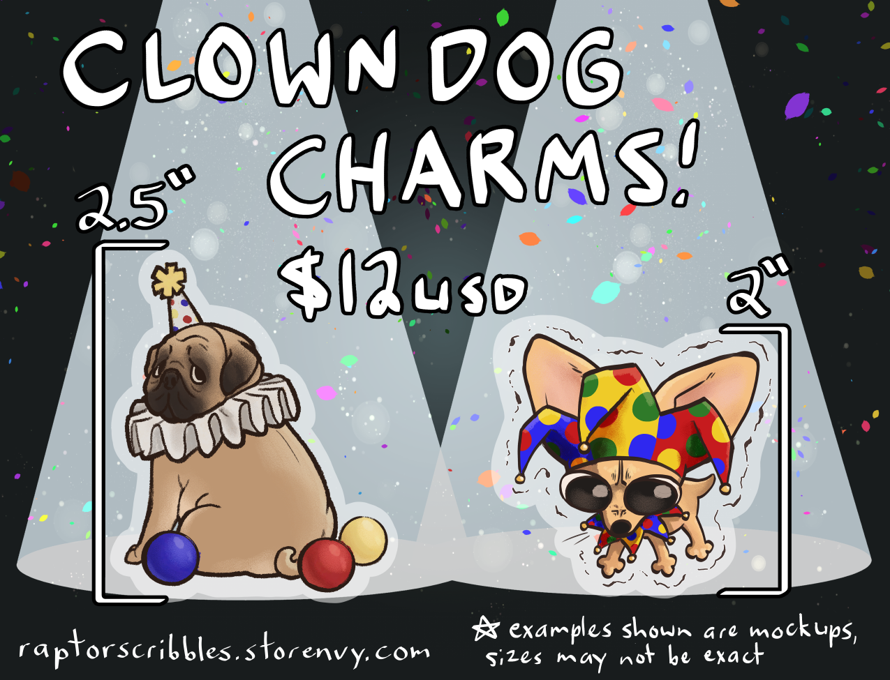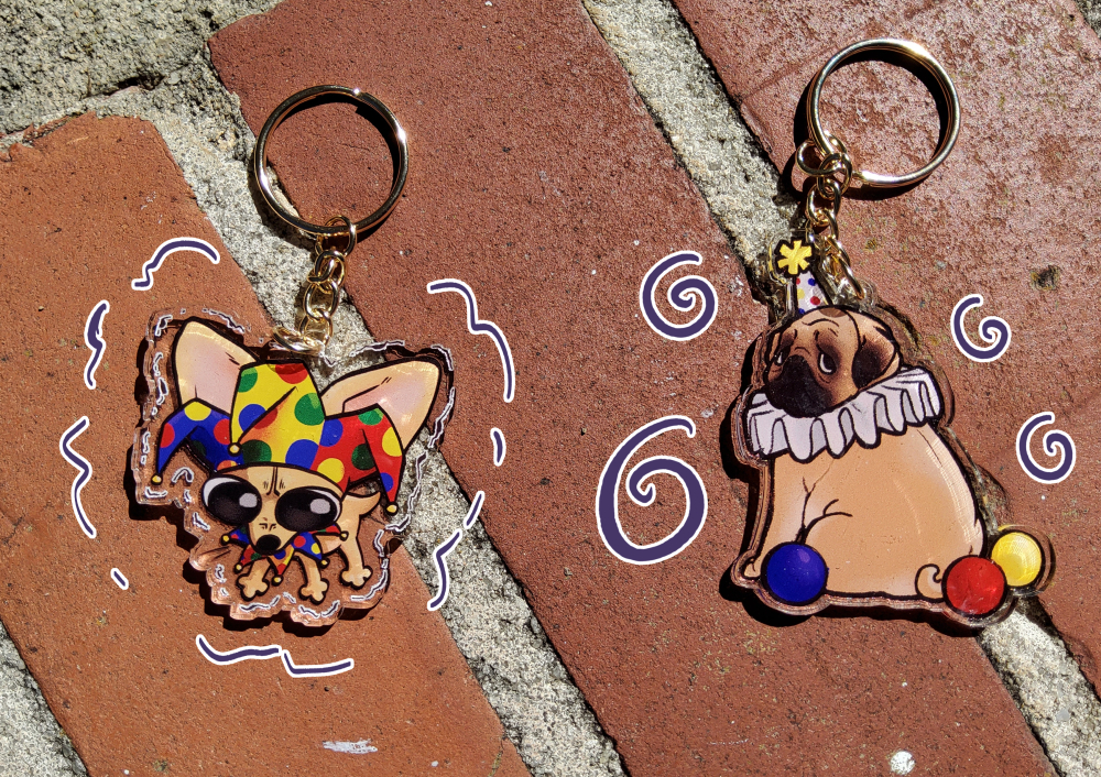 Clear acrylic charms, 2-2.5in depending on design. These will ship with a split ring keychain attached!