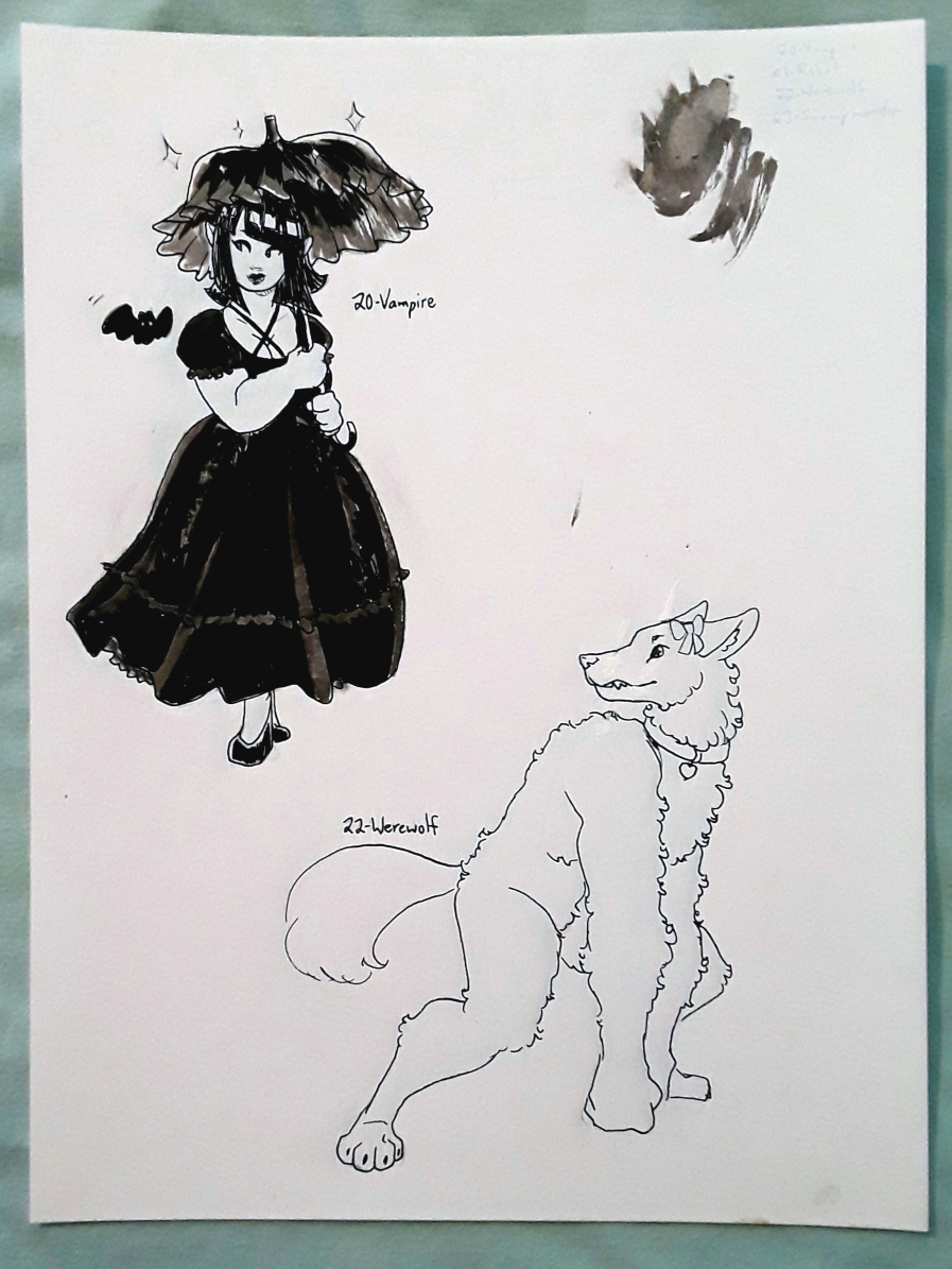 Magical Monster Girls 9x12 Sketchbook Page - Vampire, Werewolf