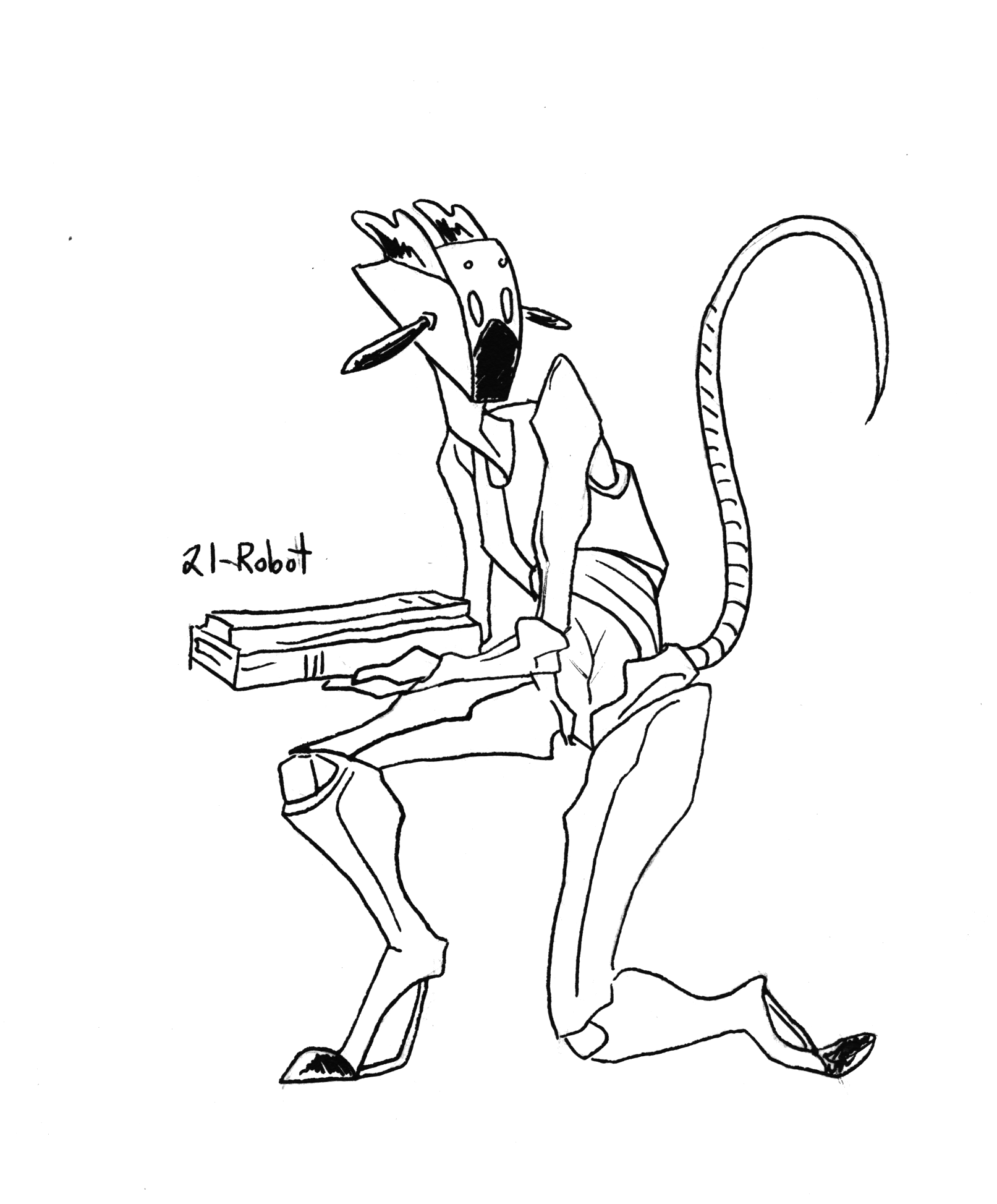 Magical Monster Girls 9x12 Sketchbook Page - Robot, Discarded sketch