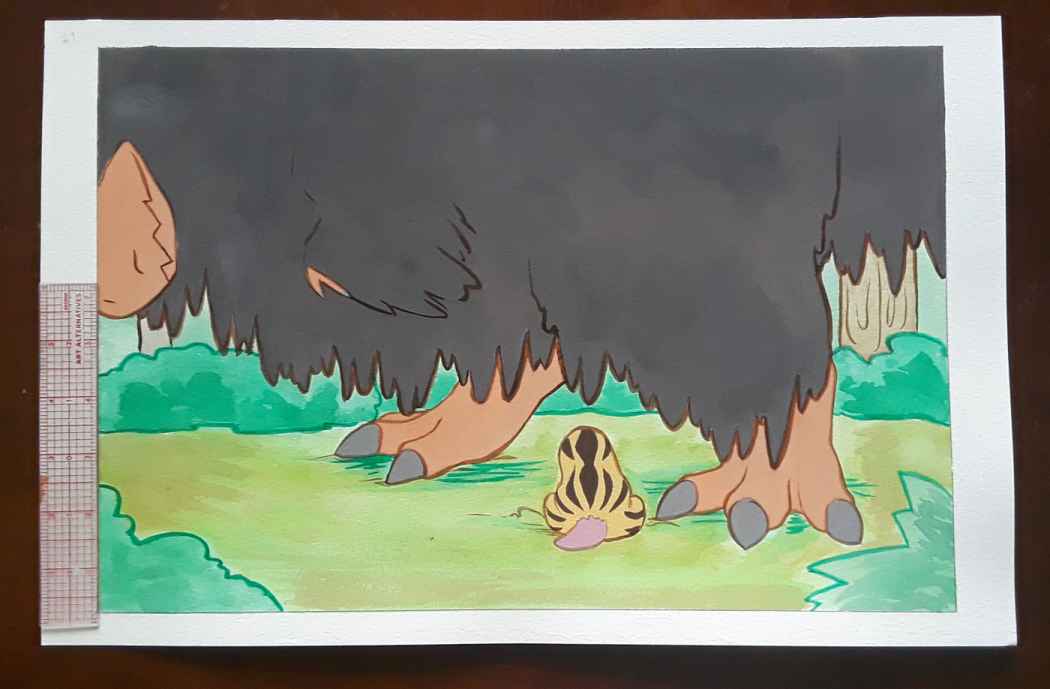 Original painting from the creation of my children's book, Lost Little Rex; gouache and ink on watercolor paper. Minor scuffing of the paper outside the illustration area is common, as are slightly rough/uneven edges. Example photos are unedited except for minor color corrections.