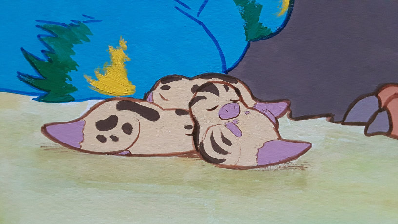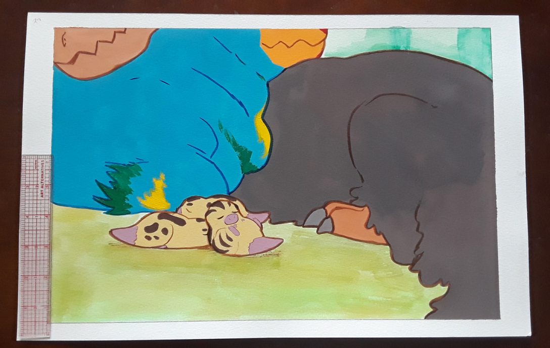 Original painting from the creation of my children's book, Lost Little Rex; gouache and ink on watercolor paper. Minor scuffing of the paper outside the illustration area is common, as are slightly rough/uneven edges. Example photos are unedited except for minor color corrections.