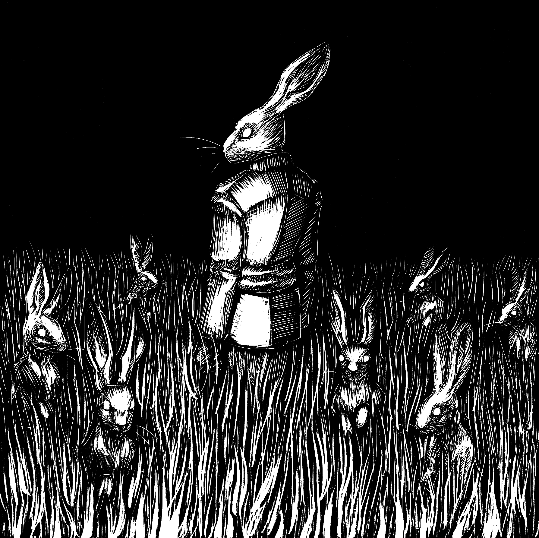 hares scratchboard